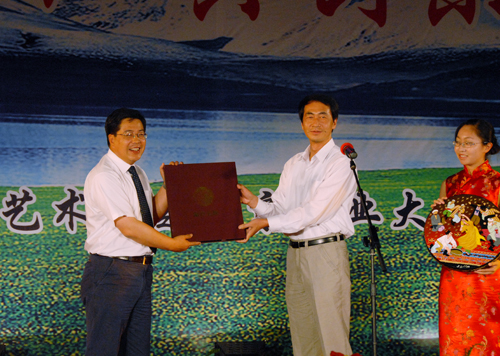 演出开始前,南京农业大学校党委书记管恒禄首先代表学校向我校领导亲自率领大学生艺术团来校访问演出表示热烈欢迎。我校党委书记也发表的热情洋溢的讲话,感谢南京农大在对口支援新疆农大工作中所做的贡献。我校郑小波校长和新疆农大李宝城书记互赠了纪念品。