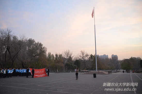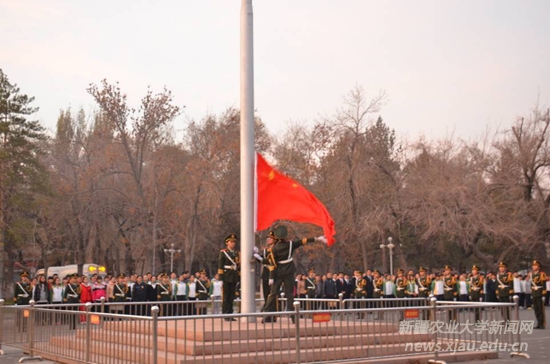 大学生新闻中心讯(通讯员:白云洁 徐小玲) 11月的天空发出柔和的光辉,澄清又缥缈,11月2日清晨八点半,食品科学与药学学院党总支书记卡米力·阿不力克木、党总支副书记李莉、部分辅导员及班主任和全体学生在国旗广场举行了升旗仪式。升旗仪式由学生会主席鞠国栋主持。