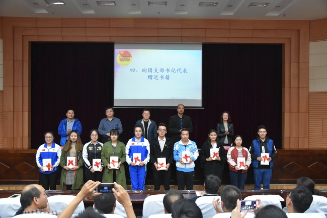 当天,校团委向各班团支部书记代表赠送了《党的十九大报告》《习近平的七年知青岁月》《习近平关于青少年和共青团工作论述摘编》和《习近平关于社会主义政治建设论述摘编》等学习资料和书记。希望大家深入学习宣传贯彻党的十九大精神,在弄懂、学通、做实上下功夫,做有理想、有本领、有担当的青年一代。