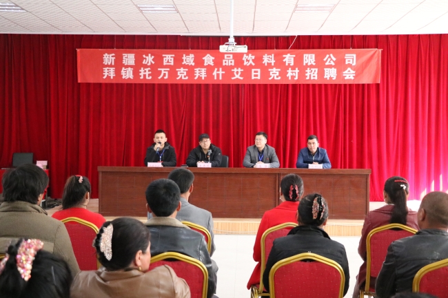 在新疆农业大学驻村工作队的指导帮助下,截至目前,托万克拜什艾日克村向新疆冰西域食品饮料有限公司输送第一批务工人员20人,从转变村民观念入手,通过树立典型带动,搭建就业平台,让百姓听得见就业之声,看得见就业之效,体会到就业之好。