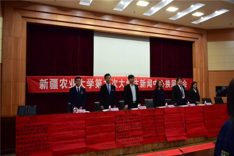 伴随着铿锵激昂的团歌声,新疆农业大学第九次大学生新闻中心换届大会正式开始。