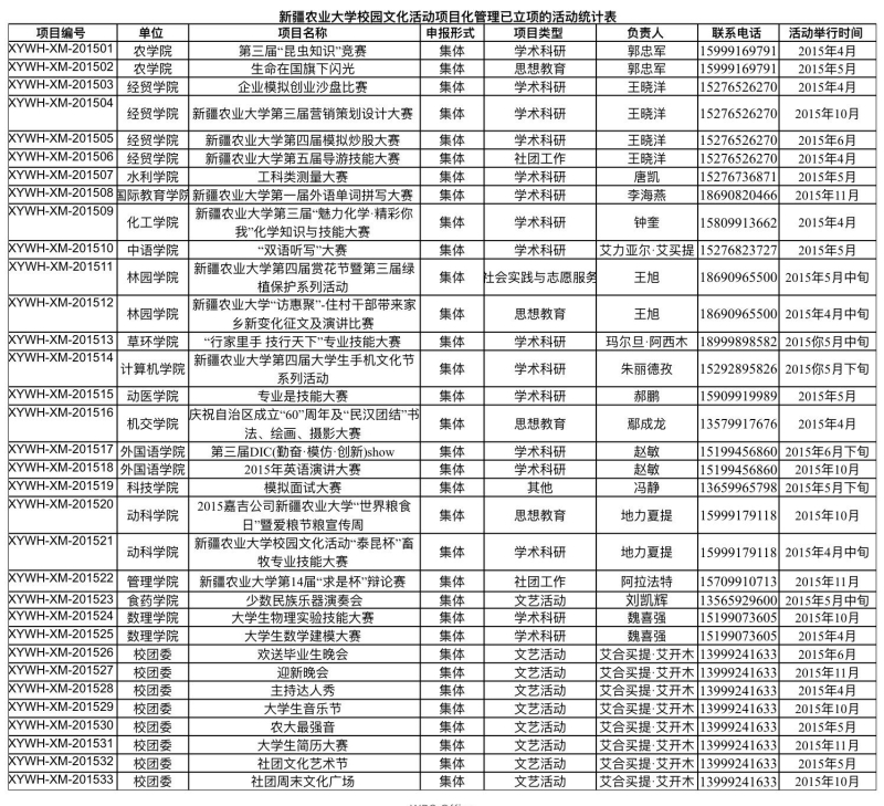 附件:《新疆农业大学校园文化活动项目化管理已立项的活动统计表》