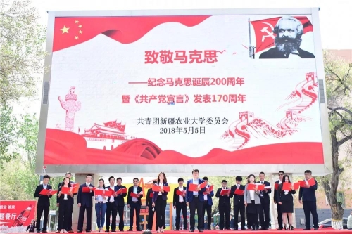 明德广场前,老师们庄严肃穆,认真的朗读,每字每句都铿锵有力,用他们的语言,来表达对马克思的崇高敬意。